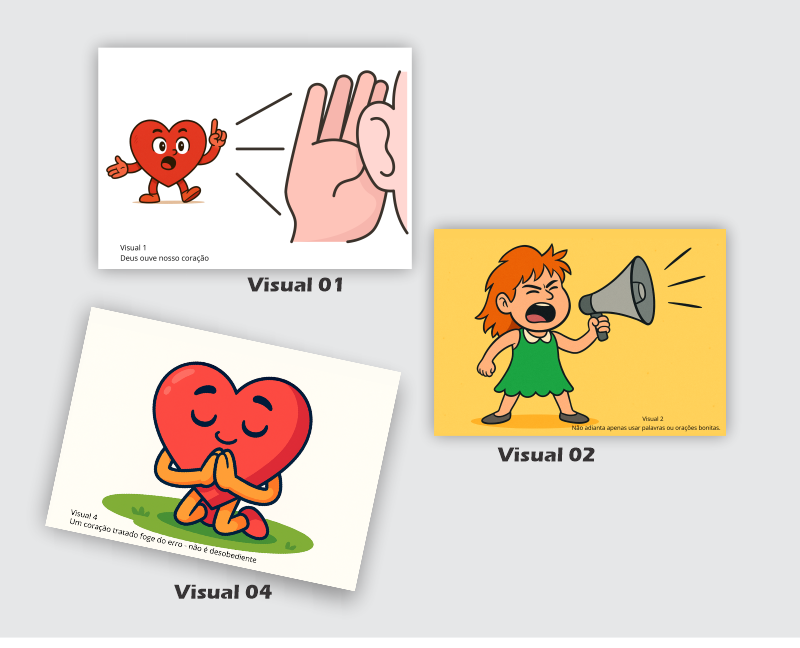 • Conjunto de visuais coloridos, prontos para imprimir e usar, facilitando a compreensão da história.